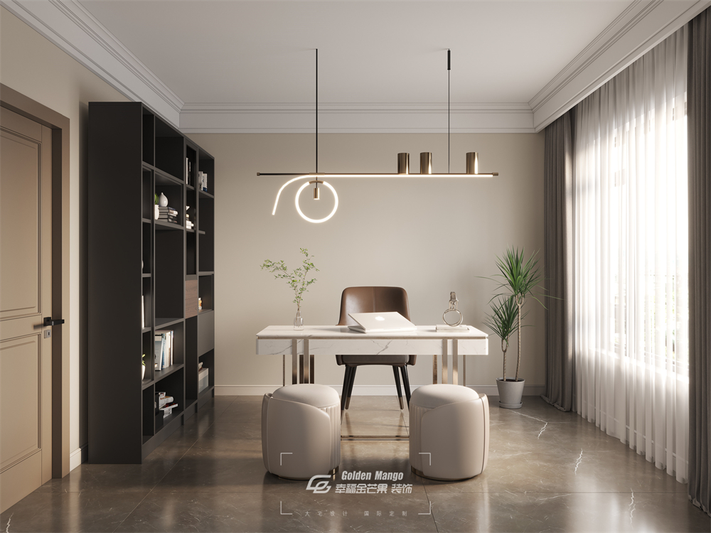 書房在簡約里融入肅然,或許是啞光的黑色書柜,或許是線條利落的書桌。總之,記憶宮殿突然震動了一下,書柜里掉出一本落灰的書籍,封面上寫著華爾街的嚴謹。