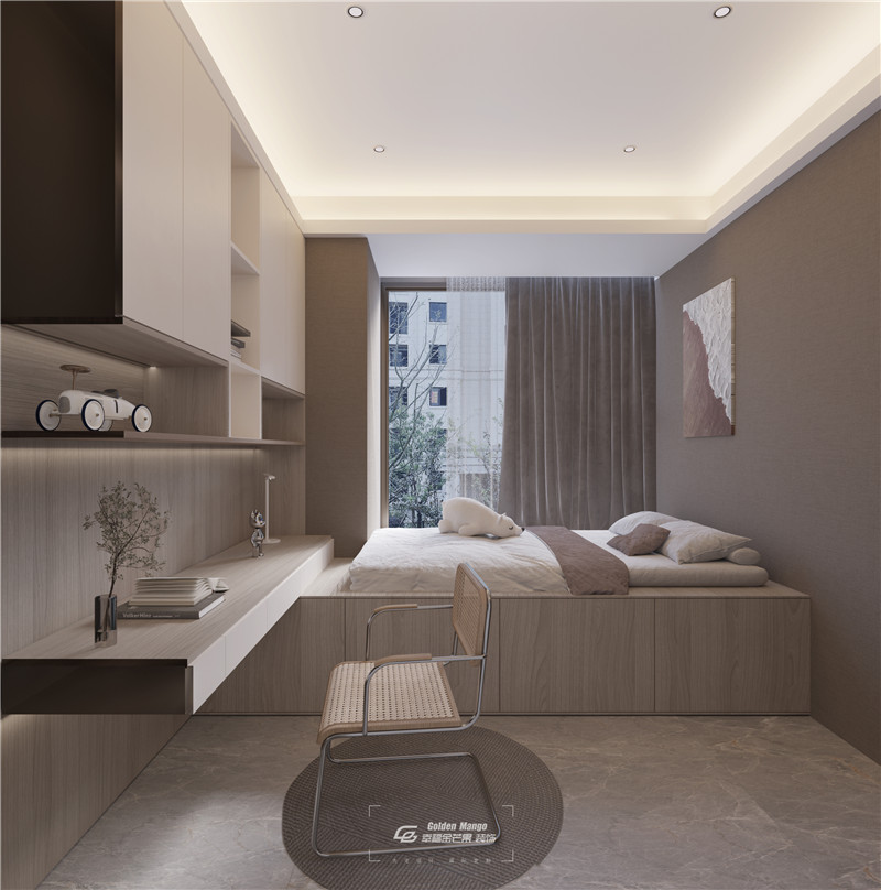 臥室格調講究寧靜,就像睡前輕柔舒緩的助眠曲,予人心安。沒有刻意的矯飾,舒適睡眠成為空間唯一的主題,在滿足基礎功能之后,尋找身心最自由的狀態(tài)。身無旁物,心自安寧,更容易讓人自然入睡。