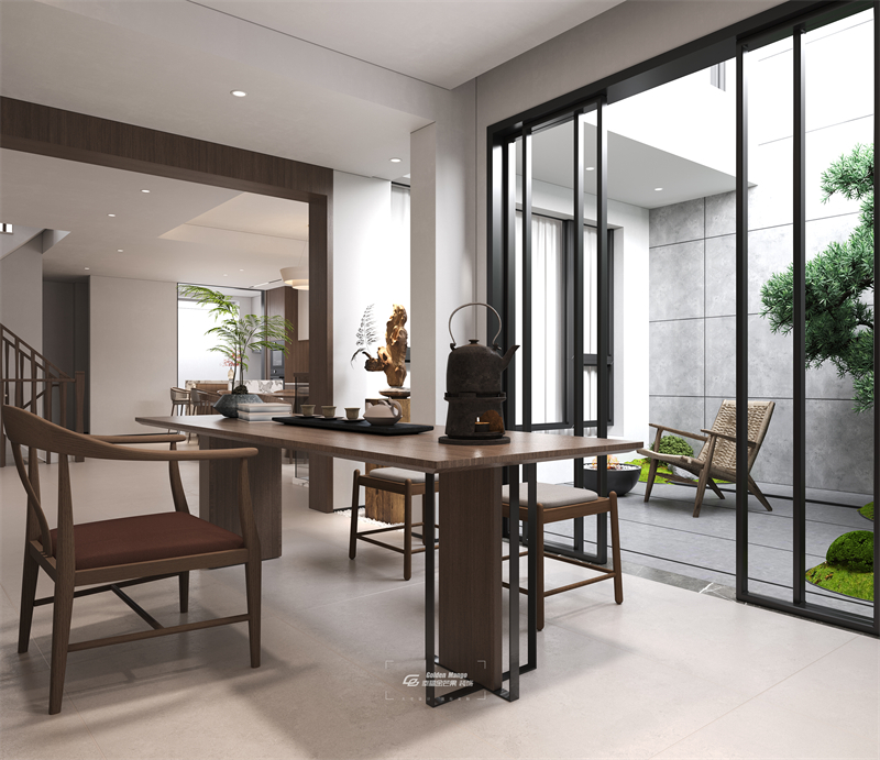 通透的玻璃門(mén)將窗外的景致裁剪成詩(shī)意的畫(huà)卷,讓自然的光影成為茶室中最靈動(dòng)的裝飾。
