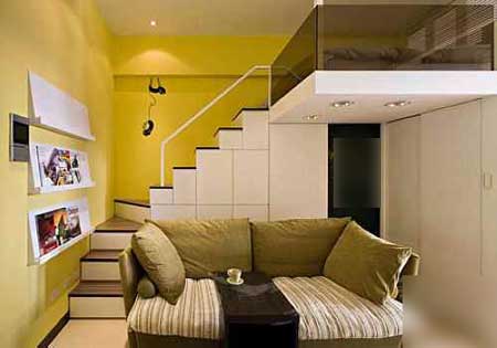 在復(fù)式結(jié)構(gòu)的居室中,只要保證樓梯承重,樓梯下面的空間也應(yīng)該充分利用起來。可以考慮在樓梯旁做一個(gè)吧臺(tái)或者工作區(qū),這樣,樓梯下面的空間就會(huì)成為儲(chǔ)藏葡萄酒、盛放酒具器皿的好地方,或者可以騰出工作、看書的區(qū)域了。