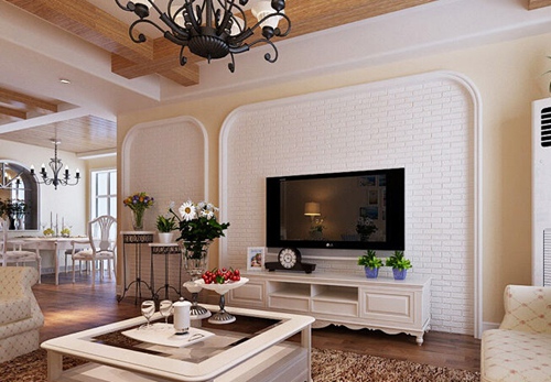 電視背景墻造型要避免有尖角、突出的設計。盡量不要對背景墻進行毫無意義的凌亂的分割 。宜采用圓形、弧形或平直無棱角的線形為主要造型。