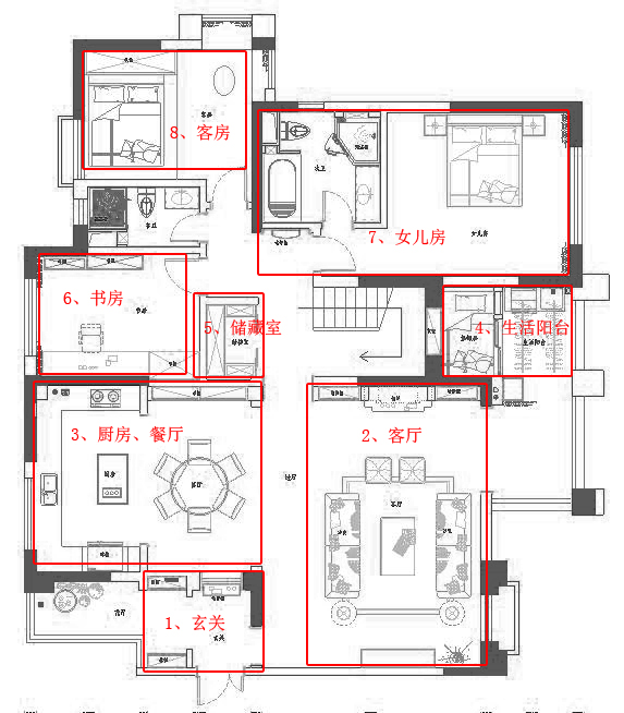 7、女兒房:小孩目前和父母一起住,需要提前預留出女兒房,單獨留一間堆放玩具和小朋友玩耍的地方;