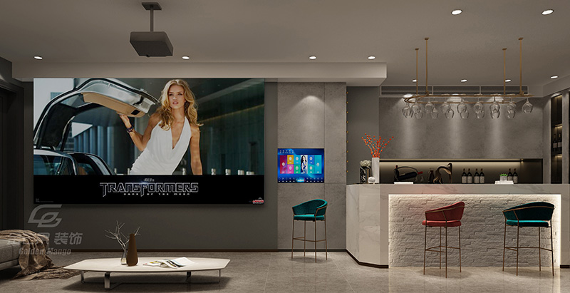 家庭影院,用稀落的射燈加上整體的灰色來營造影院的氣氛,用大投影和大銀幕帶來視覺上的完美體驗,旁邊的吧臺更適合怡情時小酌一杯的浪漫,舒適的沙發(fā)則成為暢享電影的最佳保障。