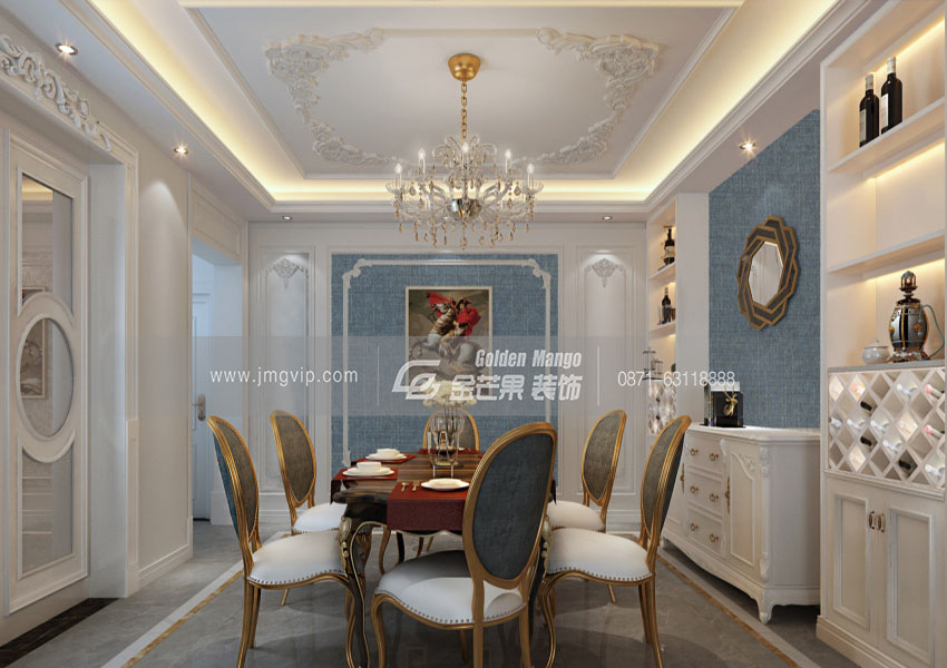 這是一個運用法式風格裝飾的案例,大量色彩的碰撞,展現(xiàn)沖突之美。配色以白、金為主。布局上突出軸線的對稱,恢宏的氣勢,豪華舒適的居住空間。運用巴洛克風格,處處是精美的雕花和壁畫。給人一種撲面而來的濃郁氣息,在任何一個角落,都能體會到主人悠然自得的生活和陽光般明媚的心情。