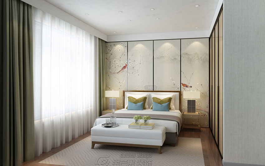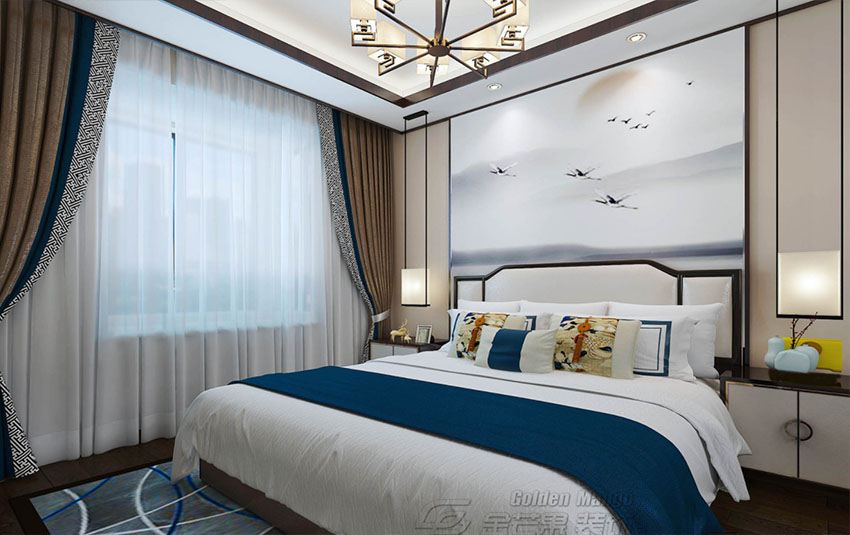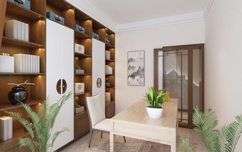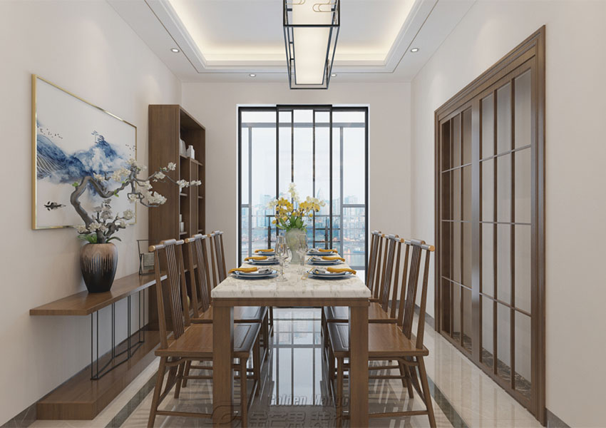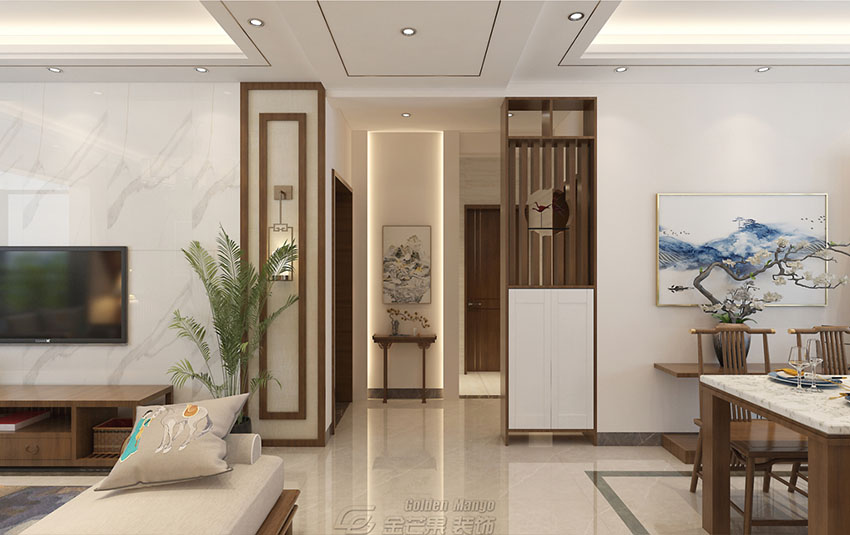 新中式風格已然成為當下裝修風格主力中的一員,融入現代元素。整體以白色、梨木色為色調。清新、淡雅。
