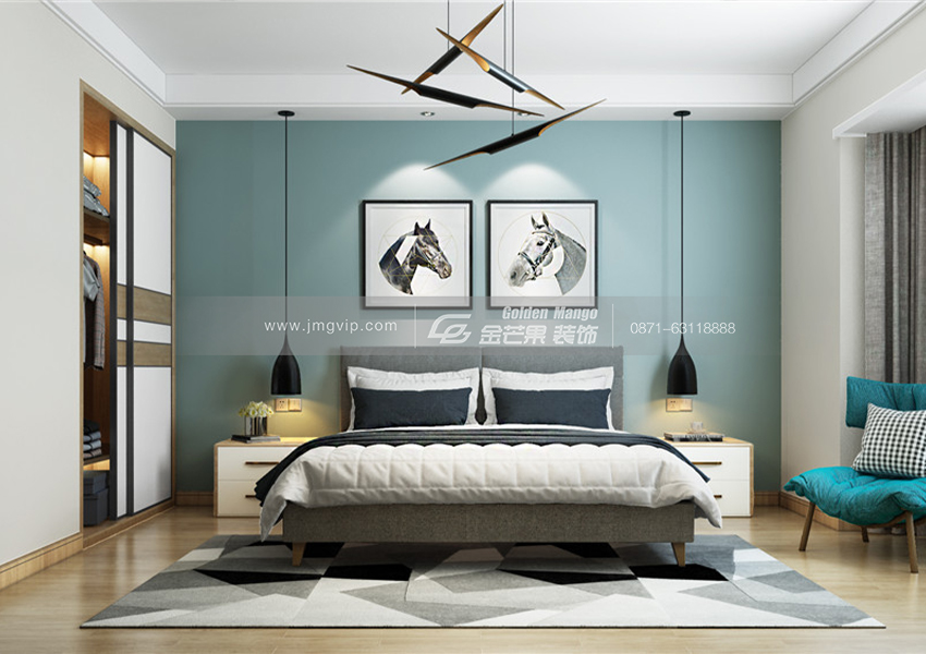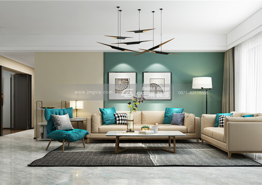 抹茶綠和綠植也是一對完美的搭配,獨特的吊燈設(shè)計有著很強的空間的穿透力。也是客廳的顏值擔(dān)當(dāng)。
