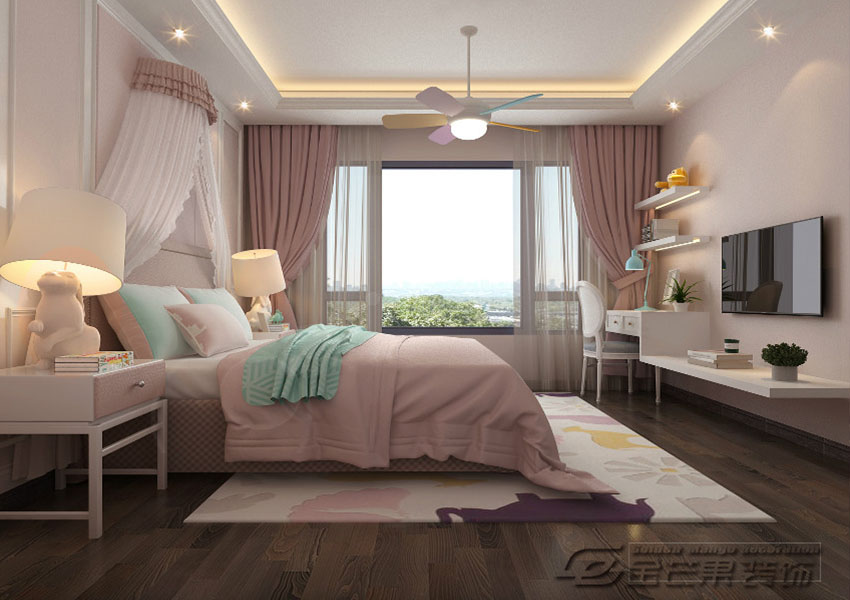 美少女喜愛的嫩粉色裝點著女兒房,風扇式的吊燈鮮明無比,熟悉的巴諾克元素的椅子。相信在晚上美夢也會有著縈繞在女兒的夢鄉里。