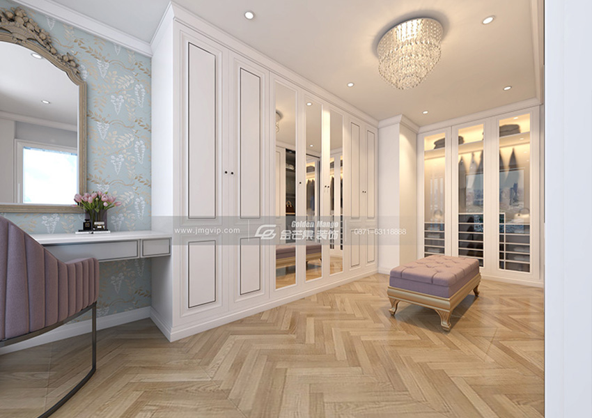 兩個衣帽間設(shè)計(jì)有異曲同工之處,以尊貴的紫色點(diǎn)綴。寬敞的衣帽間容納著主人對儀容儀表的態(tài)度。滿足主人的需求,呵護(hù)著主人的體驗(yàn)。