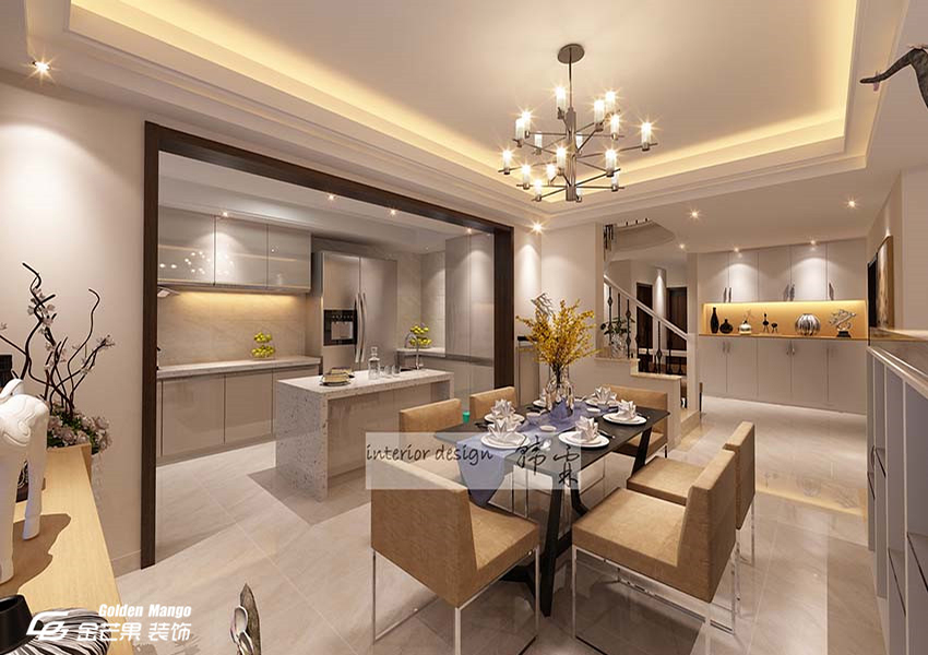 開放式的廚房、雙開門的冰箱、前衛(wèi)時(shí)尚的島臺成為高配的關(guān)鍵詞。銀色的柜體也顯得奢華無比,柜體下面的燈帶則是細(xì)心的體現(xiàn)。餐廳的設(shè)計(jì)則顯得簡約和舒適,更注重實(shí)用性。吊燈和燈帶搭配顯得獨(dú)一無二。