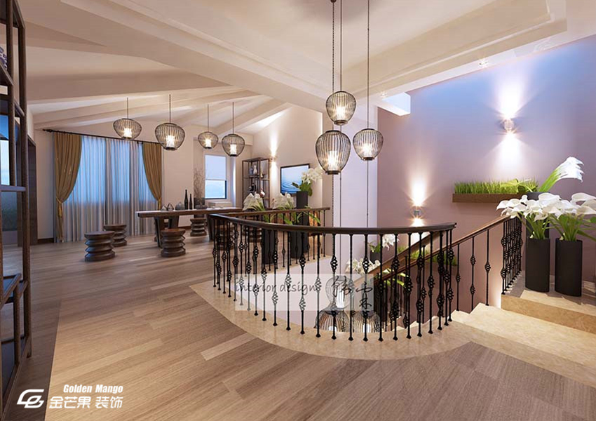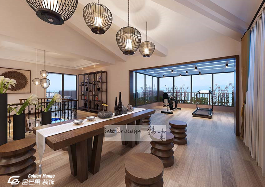 在二樓則是采用了大量的中式的元素,從品茶區(qū)的設(shè)計(jì)用心可以看出,主人對待客人的真誠,也是修身重道的體現(xiàn)。運(yùn)動(dòng)區(qū)則生命真正體現(xiàn)的地方,融入大自然,感受生命的氣息。一角陳列的陶瓷收藏品,也是歷史藝術(shù)的體現(xiàn)。