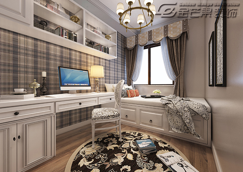 線條元素相互搭配著,這里是休息的地方,也是學習的地方,更是家庭成員之間信息交流、客人來時臨時客房,增進感情的最佳地方。在儲物上更顯輕松,背景墻面以樸素的風格裝飾,這一點在歐式風格的設計搭配中顯得大膽。