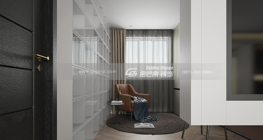 書房也能秒變儲物間,規(guī)格多樣的柜體和格子,儲藏著知識,也儲藏著日常用品,真皮沙發(fā)在看書時,更放心,也更安心。寬高適中的窗子為書房提供著充足的光線,電視背景墻隔開最大限度減少來自客廳的影響,沒有封閉的空間,使用上更加的方便。也驗證了實用性這一要點。