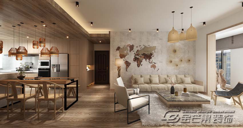 案例說(shuō)明:本案例是一個(gè)三室兩廳一廚兩衛(wèi)的戶型,色調(diào)上運(yùn)用了梨木色和白色相搭配,大量木材的使用,整體樸素,質(zhì)感更強(qiáng),還原了自然風(fēng)的場(chǎng)景。各式各樣燈具的使用,為整體的風(fēng)格氛圍的渲染取到了不少的作用。許多細(xì)節(jié)方面尤其體現(xiàn)業(yè)主的興趣愛(ài)好和個(gè)性。