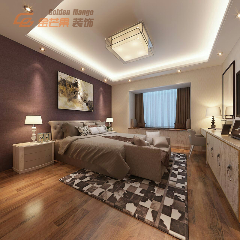 臥室并沒有更多的亮色搭配,這也為整體的溫馨的由來。許多地方以暗色進行裝點,意圖給屋主人一個更好的休息環境,木質的地板質感十足,搭配上一整面的咖啡色的背景墻面,情到深處,也是浪漫的始終。