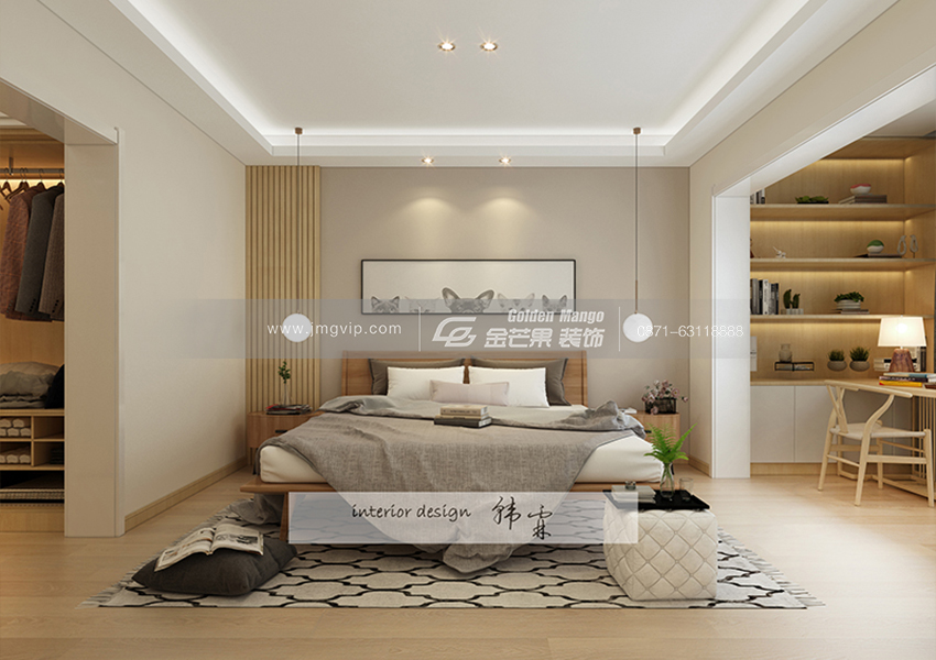 簡單才是生活的本真,木材提升著生活的質(zhì)感,床頭兩個(gè)落地吊燈顯得設(shè)計(jì)感十足,床頭的掛畫則體現(xiàn)著強(qiáng)烈的西方色彩,在風(fēng)格上也有中式和北歐風(fēng)格的相融合,其結(jié)果不僅是傳承,更是對(duì)舒適度的提升。打造一個(gè)獨(dú)立、私密的個(gè)人空間。