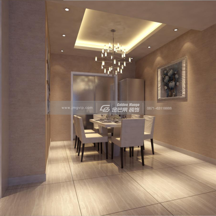 吊燈有緩緩升起的孔明燈的感覺,吊頂?shù)脑O(shè)計(jì)立體上更強(qiáng),布面包裹的椅子和桌面搭配。方方正正的餐桌恰好和吊頂相呼應(yīng),廚房磨砂的玻璃門,更顯得神秘感十足。使用面積足夠的餐廳,不懼親朋好友的到訪。