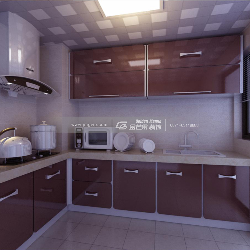 廚房在色彩稍顯不一,以更耐看的紅色作為櫥柜的顏色,面板燈提供著足夠的光線,動線合理,操作便利,各類廚具一應(yīng)俱全,只差擁有之人施展廚藝。