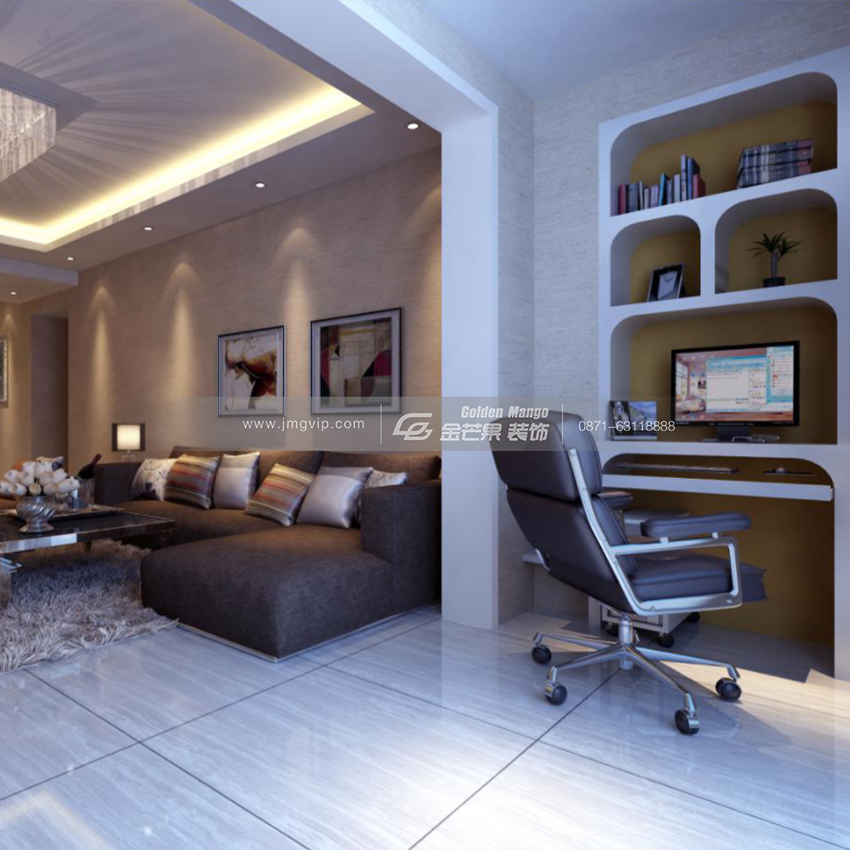 在陽臺處布置學(xué)習(xí)、工作、娛樂區(qū),工作學(xué)習(xí)的同時觀賞窗外的風(fēng)景,和客廳有很好的互動性,增加相互之間的交流。靈活的設(shè)計(jì),便利的生活,這正是現(xiàn)代風(fēng)格的經(jīng)典所在。