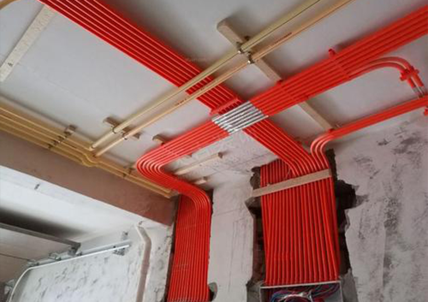 主墻全都改造好之后,就是開始安裝水電了,根據規劃水電線路布局,布置好水電的管道之后,就可以穿線了,線路都是埋在地面或者墻面或者頂面(推薦水電走頂,可以參考文章:水電走頂,竟有這些好處。),這樣安裝的水電質量比較好,不容易出現問題。