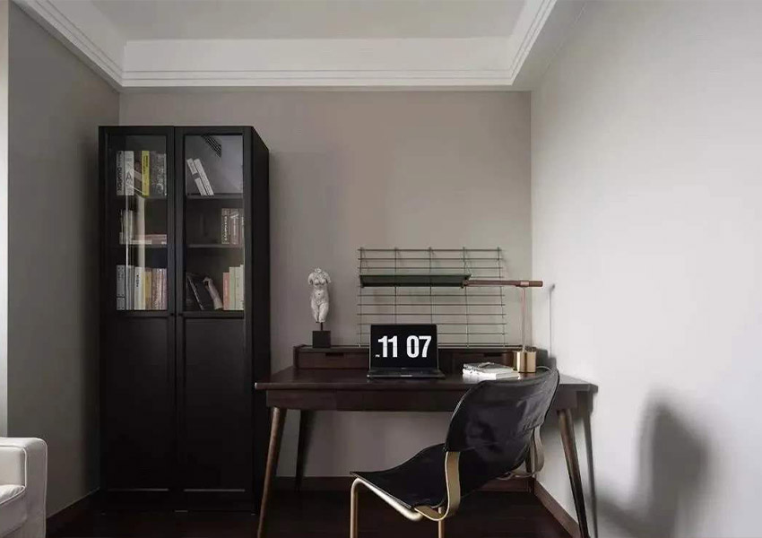 書房主機和顯示器預留插座,離地30cm處設置,筆記本、手機、臺燈一般設置在桌面上方。
