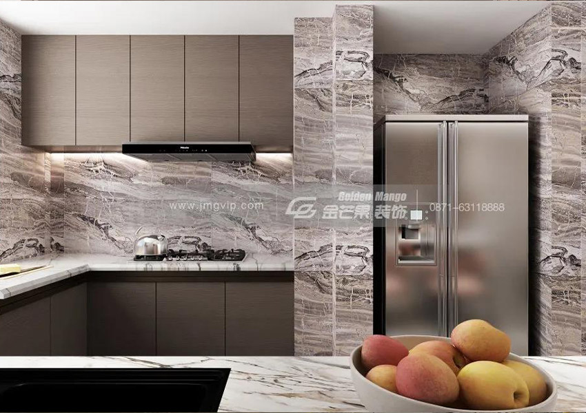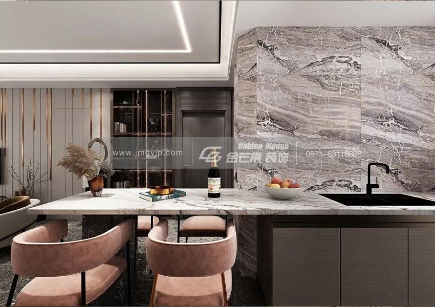 紋理豐富的大理石布滿廚房,