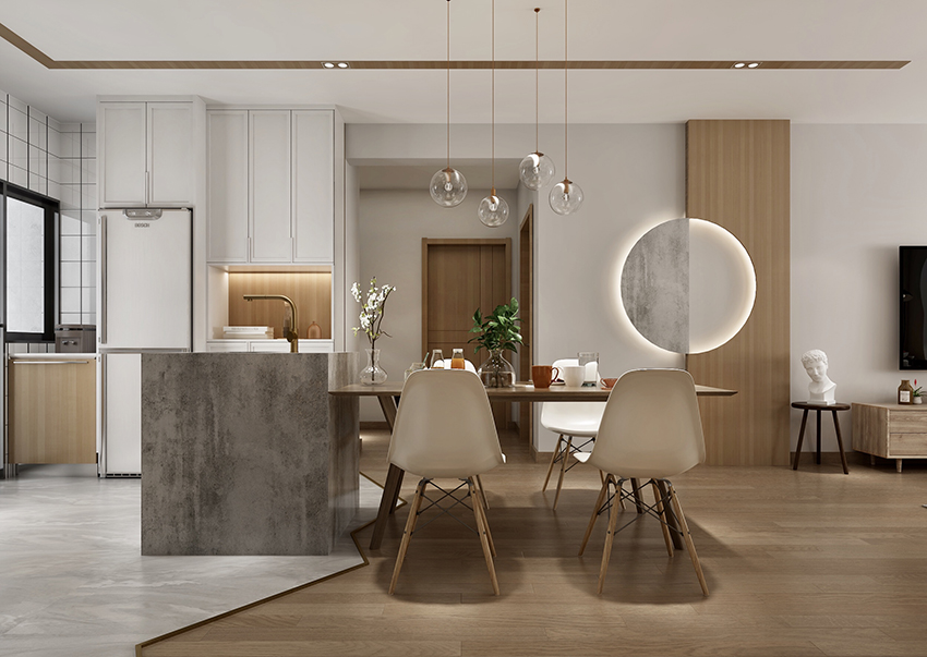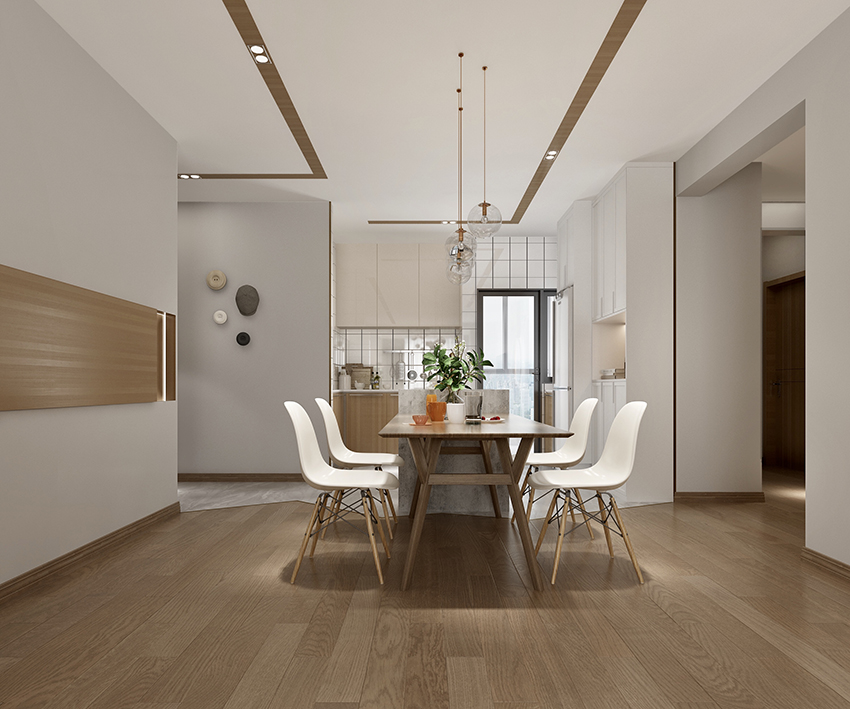 純凈的白遇上純粹的原木,像山間溫柔的風(fēng),似林中斑駁的影,閉上眼,仿佛回到了小時(shí)候赤腳奔跑的場(chǎng)景,腳底下原木溫厚的質(zhì)感,讓人踏實(shí)又安心。