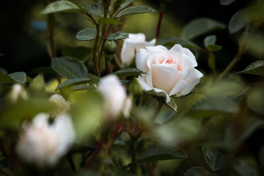 花臺(tái)里的香檳玫瑰開(kāi)了,