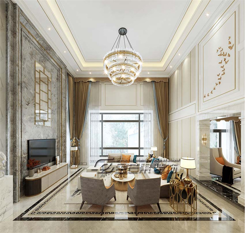 挑高的客廳設計,入眼即是貴氣典雅的感覺,營造宮廷皇室般的尊貴感。