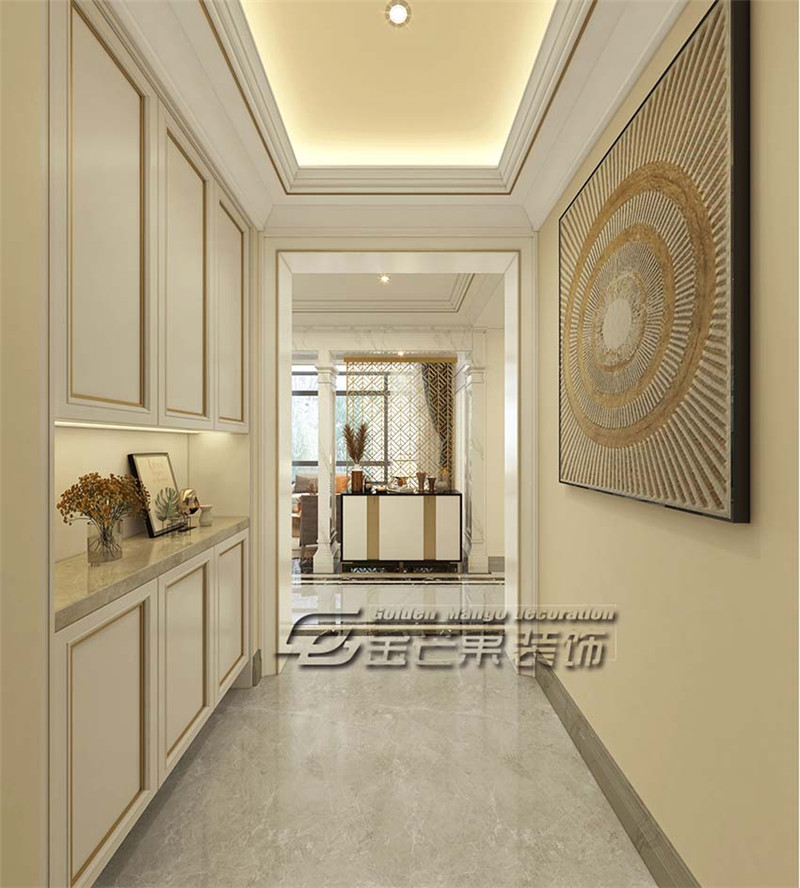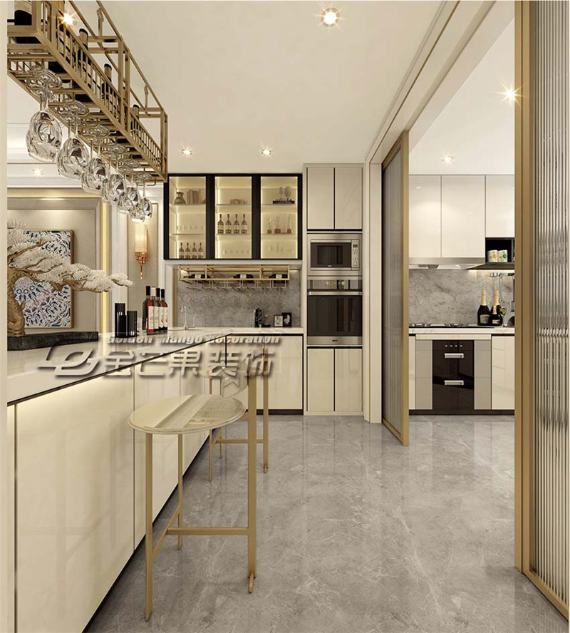 白色鑲黑邊的柜體簡約時尚,玻璃和金色線條碰撞出個性的氣質。無時無刻不在展現的不羈與浪漫,讓業主在家里愜意享受歐式風情。