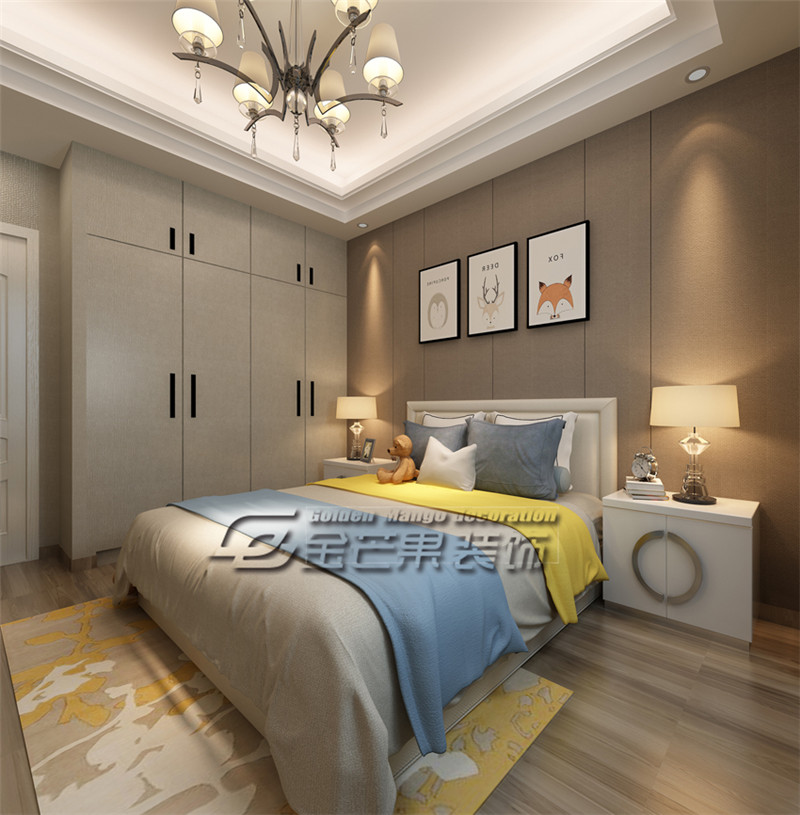 清新、亮麗的顏色搭配可愛的裝飾畫,整個房間整潔又充滿童趣。