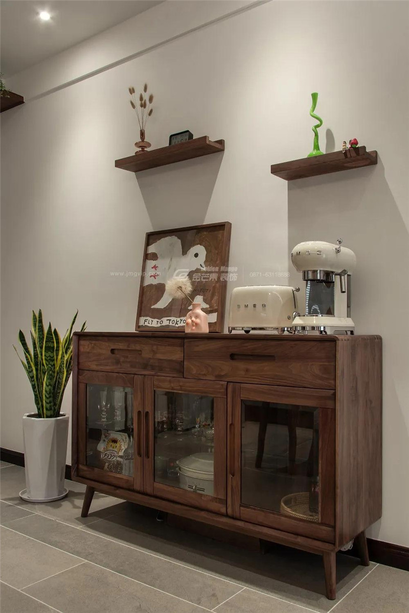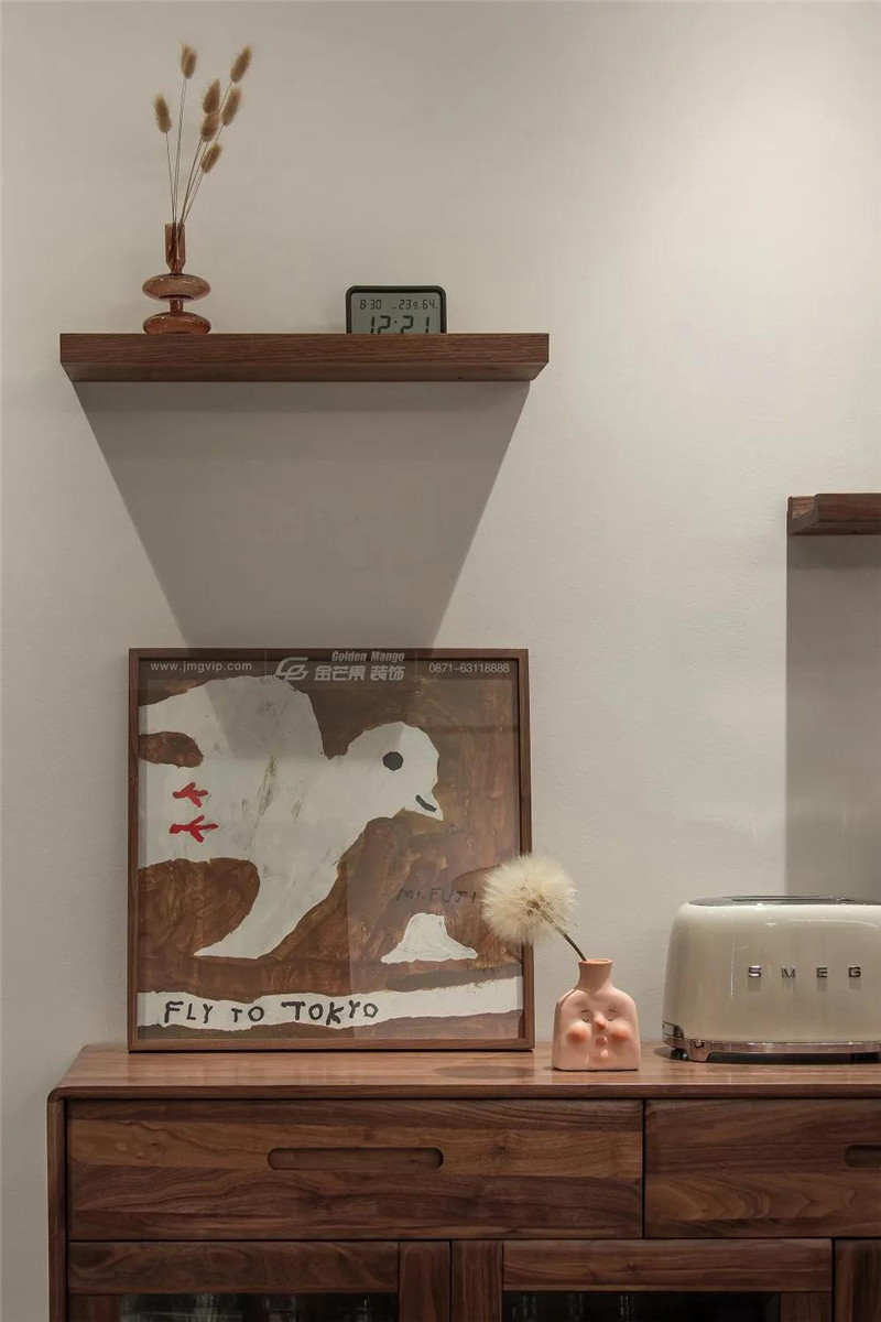 餐邊柜加上一些小擺件的加持,活潑氣質,屋主可愛、精致的小心思以及熱愛生活的態度,足以讓整個家居空間散發不一樣的迷人魅力。