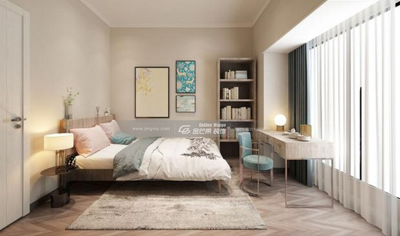 簡約大氣,端莊優雅,靈動的燈飾和床頭背景墻的端莊結合,產生一種個性的時尚感,既沉穩,但不會沉悶。