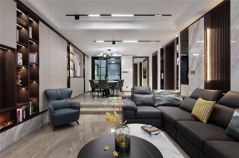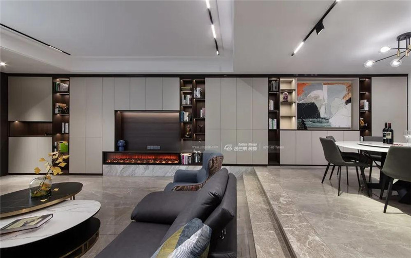 業主周先生是個很注重生活品質的人,大家看到客廳柜體上設置了很多開放格,除了增加空間層次感,業主還購置了很多有意思的小擺件,這么熱愛生活,當然也不會被生活辜負啦~