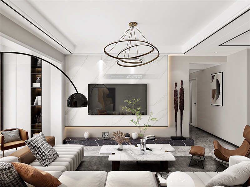 大理石電視背景墻大氣有格調,加上精美的黑色細線條,簡約的美。
