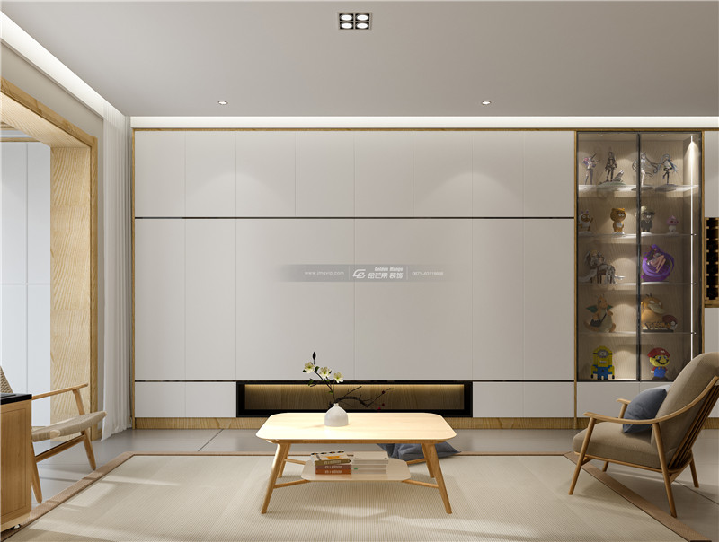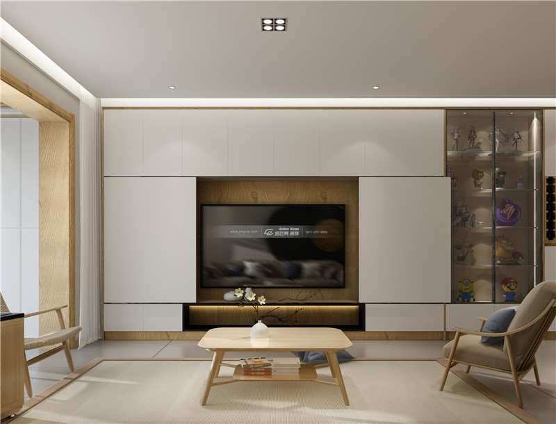 電視機內嵌,這種格子式的手法也在日式家居打造中經常運用,把柜子藏到墻壁里面,使房屋的使用空間最大化。可移動的柜門。一推一拉之間兩種效果輕松駕馭。