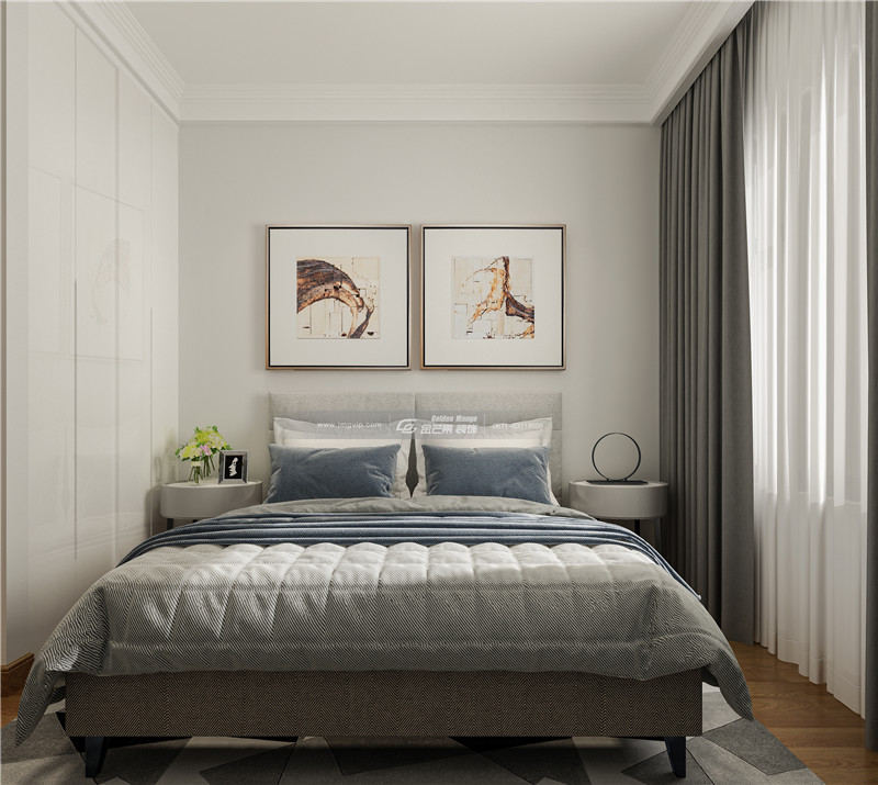 優(yōu)雅、舒適的空間,整體淺色系的空間加上粉色的點(diǎn)綴,讓整個(gè)空間散發(fā)優(yōu)雅、氣質(zhì)的氣息,床頭的裝飾畫和個(gè)性的燈飾體現(xiàn)精致感,一縷香夢(mèng)、一段霓虹,讓生活變得精致、優(yōu)雅。