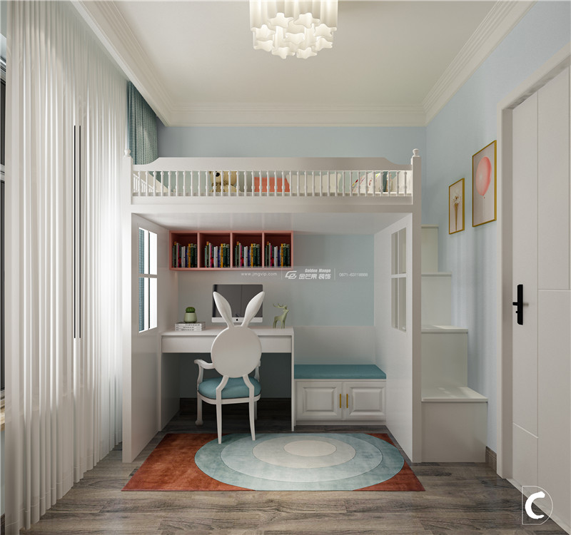 清新可愛(ài)的顏色,童趣的家具和裝飾畫,讓房間簡(jiǎn)潔、干凈又不失童趣。白色的柜體簡(jiǎn)潔純凈,收納功能強(qiáng)大。