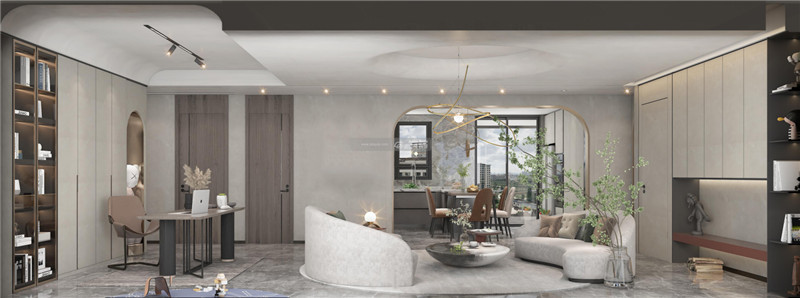 柔和的線條,溫柔的配色,沒有固定的空間規劃局限,自由自在的家居氛圍,不規則的沙發,一切都變得輕松、隨意起來。兩邊的柜體增加品質感,且帶來大量收納空間,收下空間的瑣碎,把一切讓給自由。點一盞精美的等,風都是溫柔的。