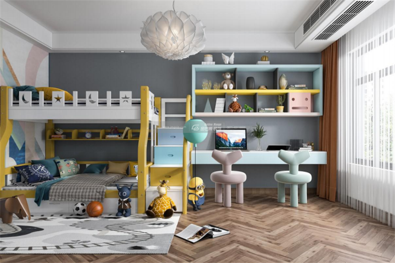 為孩子渲染一個繽紛的世界,上下床和夢幻的燈飾,帶來純真、可愛的夢幻花園。