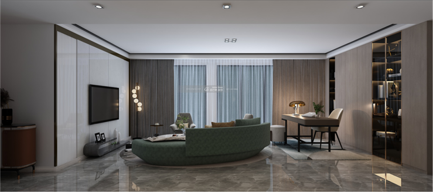 本套現代風格案例,以淺色系為主調,沉靜的空間氛圍上點綴綠色,就像闖入了一片清新的森林,讓整個家居變得個性十足,舒適安逸的氛圍讓家氛圍感、高級感、舒適感兼具,創造都市里的棲息一角。