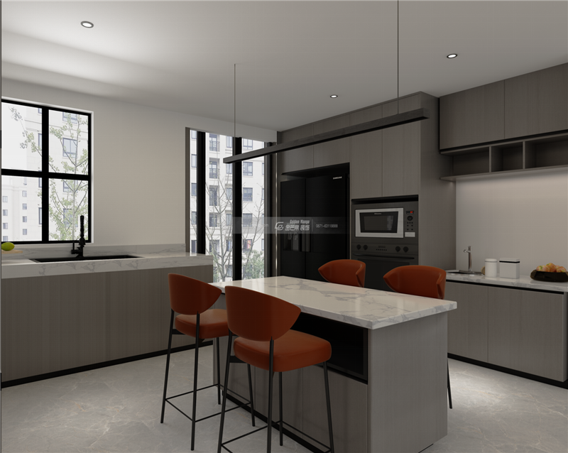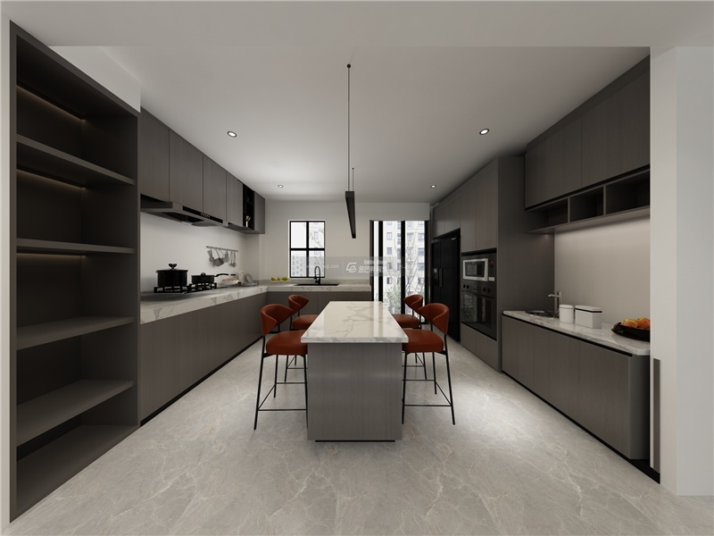 廚房采用開放式廚房不僅讓視覺效果更舒服,在做飯的同事還能和家人交流,互動的情感交流讓家更溫暖。