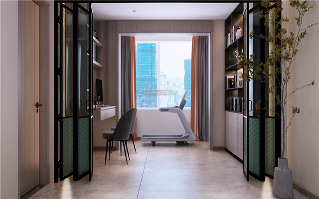 沉靜的氛圍中融入綠色的家居,像一縷清風,又像一杯香醇的茶,細膩優雅,摩登氣質。開放式的廚房讓家居空間更靈活。絨布餐椅帶來低調的華麗感。