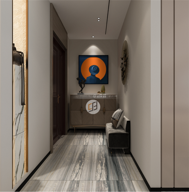 用裝飾畫作為點(diǎn)綴,在光影、材質(zhì)和線條之間,打造移步易景的風(fēng)景。