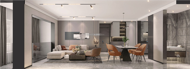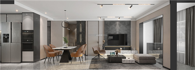 灰色的基調(diào)里融入活潑的橙色,渲染出優(yōu)雅、溫馨的家居格調(diào)。采用無主燈設(shè)計(jì),暗藏式軌道燈搭配線性燈,光陰之妙呈現(xiàn)的高級感,更好的美化空間。
