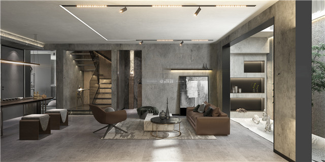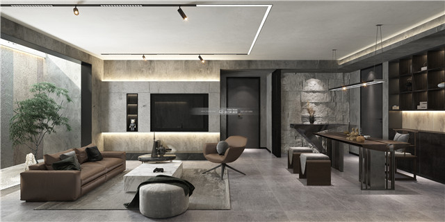 工業(yè)loft風(fēng),滿足屋主個(gè)性化需求和審美感受。整體灰色墻體搭配棕色家具,高級冷酷的感覺讓家居充滿個(gè)性,營造安穩(wěn)、沉靜的感覺。