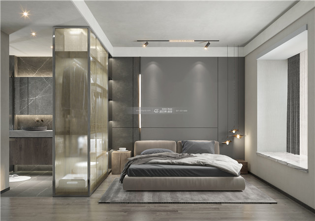 簡潔大方的格調(diào),個(gè)性的衣柜讓臥室變得別具一格,且起到空間區(qū)隔的作用,但是隔而不斷,通透有格調(diào)。