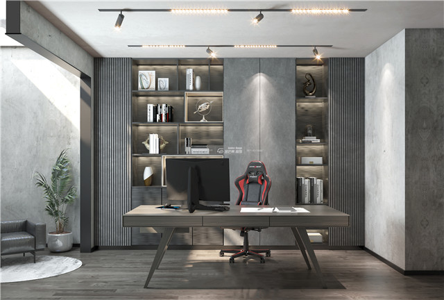 仍然延續(xù)整體灰色的質(zhì)感,打造利于思考的品質(zhì)個(gè)性空間。書柜通過不同材質(zhì)的搭配體現(xiàn)出豐富的空間層次感。高級有格調(diào)。