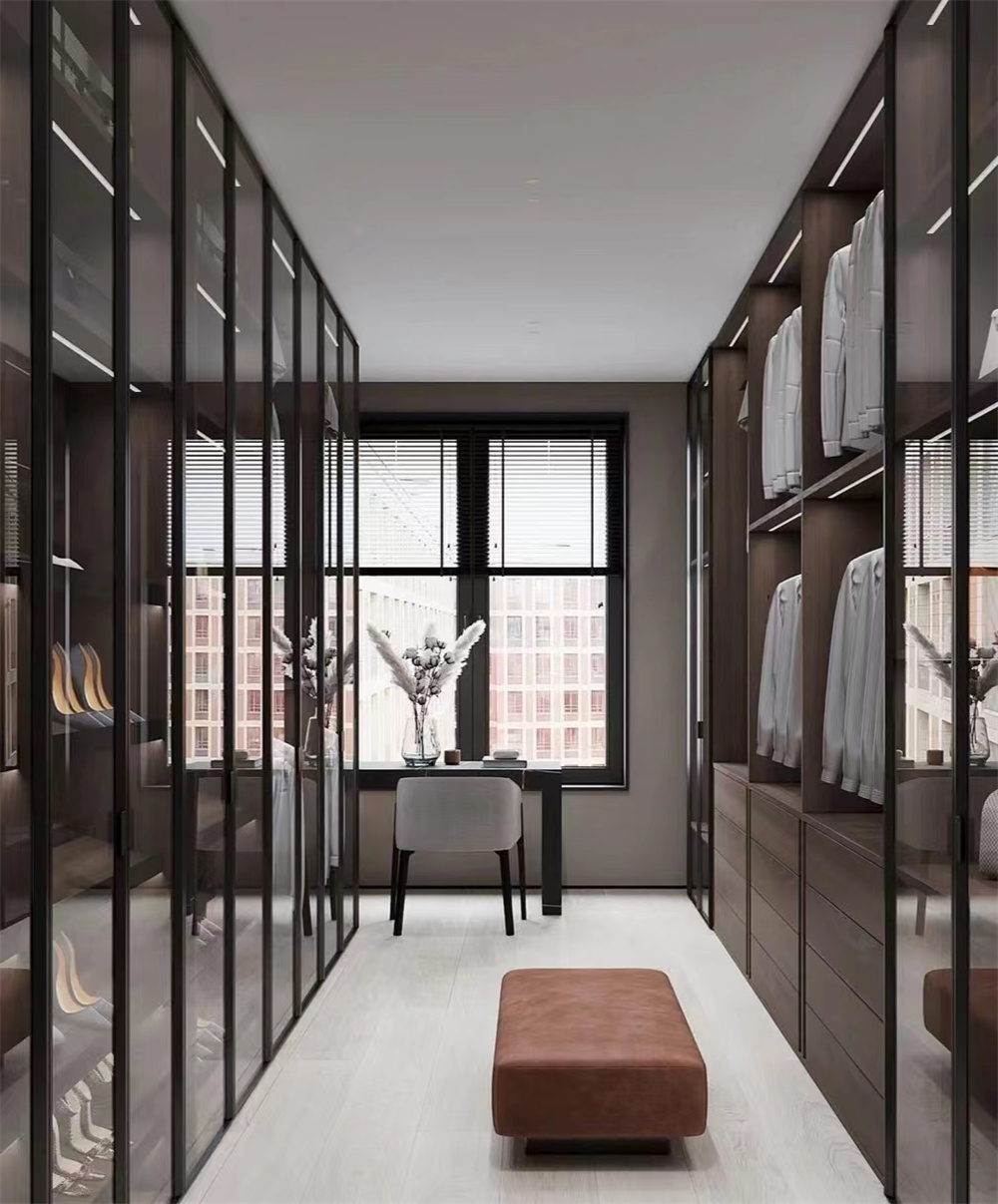 擁有一個屬于自己的衣帽間,相信是眾多人內(nèi)心的向往和追求。衣帽間是一種寧靜而高貴的藝術平衡,它集收納、展示、梳妝為一體,是一個家庭供存放衣物和更衣梳妝的專用空間。