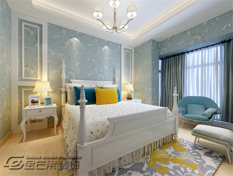 聽說城堡里住著公主,你的臥室里也藏著一個精致的秘密花園,童話里開滿鮮花的城堡此刻就展現在眼前。田園風格的床具和碎花的床單,優雅的藍色墻紙,明媚的陽光,輕松打造田園風。