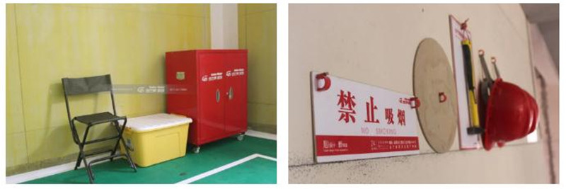 每個工地每層樓至少配備4L滅火器1支,保障用水用電安全;現場必須配備醫藥箱,預防意外情況;安全護欄、安全帶、安全網,防止人員及材料從高空墜落……嚴格按照金芒果《安全施工管理規范》要求和監督每一個微小的細節,踐行安全施工。